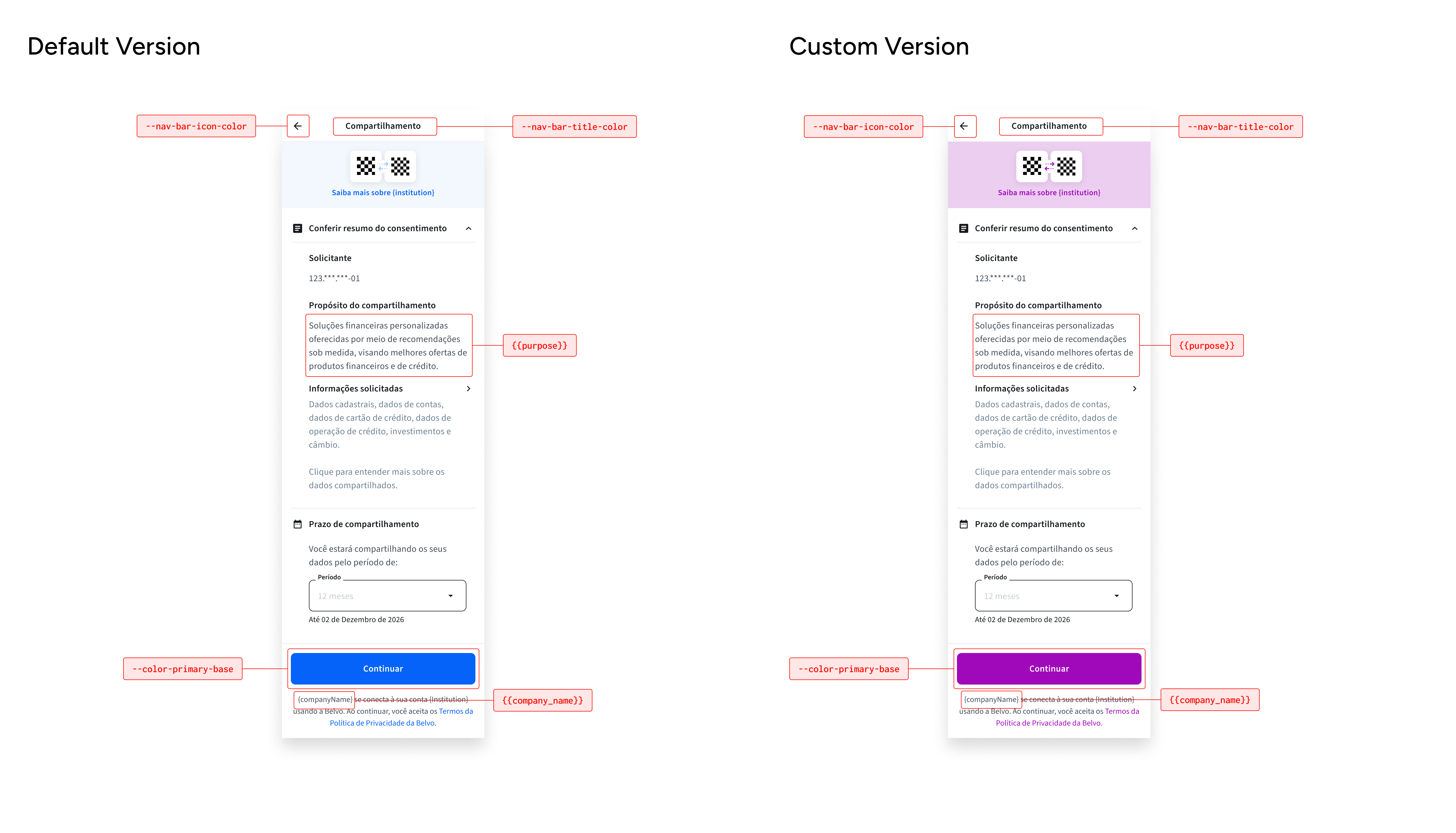 }You can modify the text describing the purpose for requesting your user's data (Propósito do compartilhamento) to better describe your use case.