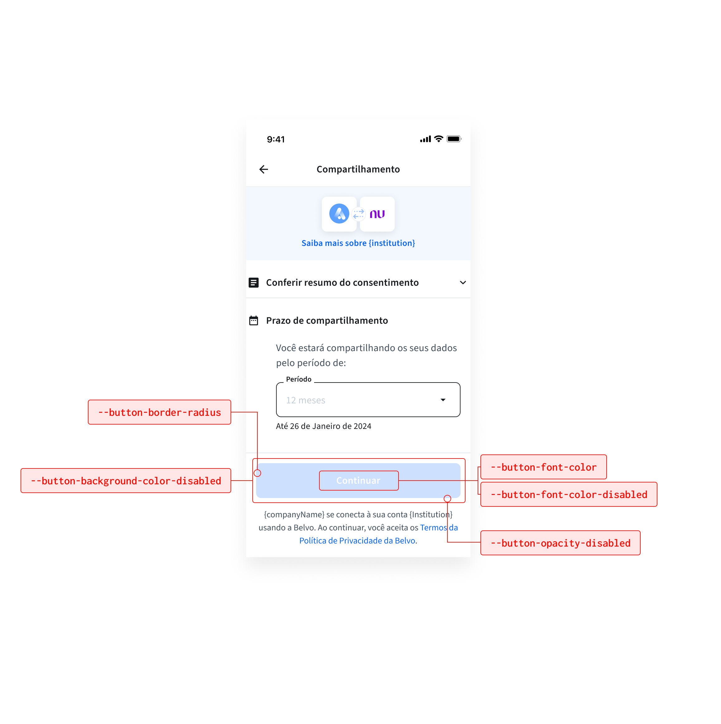 With Belvo's Connect Widget, you can optionally add the following branding and customization: